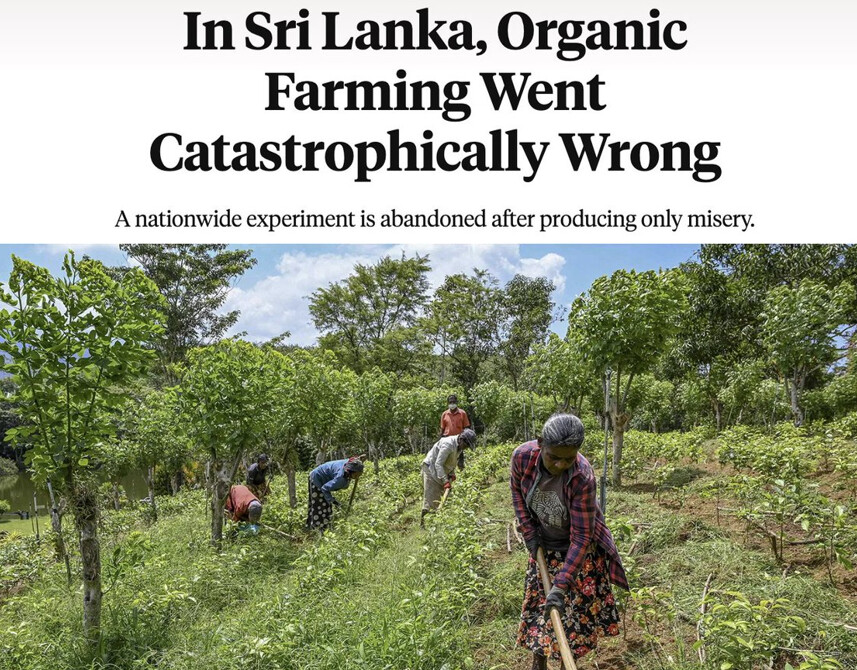 Шри Ланка проведе зъл експеримент над своите граждани миналата година. Под влиянието на активисти за биологична храна и противници на ГМО, правителството забрани вноса на синтетични пестициди и наложи преход на страната към изцяло биологично земеделие, оставяйки огромното мнозинство от фермерите без достъп до жизненоважните инструменти, които използват за отглеждане на културите, от които страната им зависи.